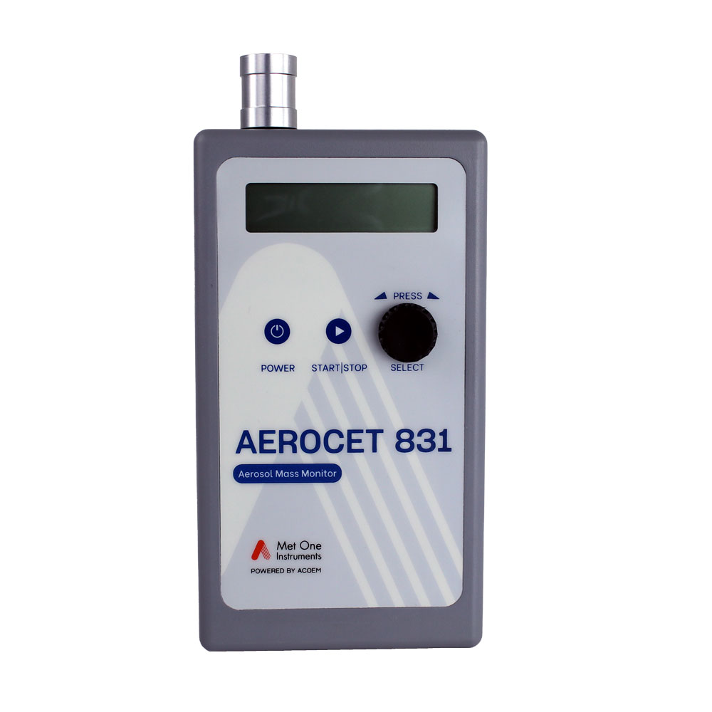 Met One Instruments’ Aerocet 831 is simple to operate with two front-panel buttons used with the multifunction rotary scroll wheel to provide user friendly and efficient operation. Just press and rotate to scroll thru the menu driven platform. With the Aerocet 831 one can view sample history easily on the display or export data via the USB port using the included COMET software. The 831 stores up to 2500 sample events. The USB interface provides quick data downloads and field firmware upgrades. The Aerocet 831 provides up to 24 hours of typical intermittent operation or 8 hours of continuous use. Recharge time is only 2.5 hours. The included AC charger / adapter operates the counter even when the battery pack is discharged.